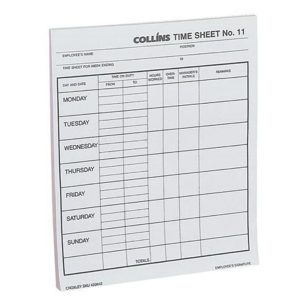 Collins No.11 Time Sheet Pad 100 Sheets