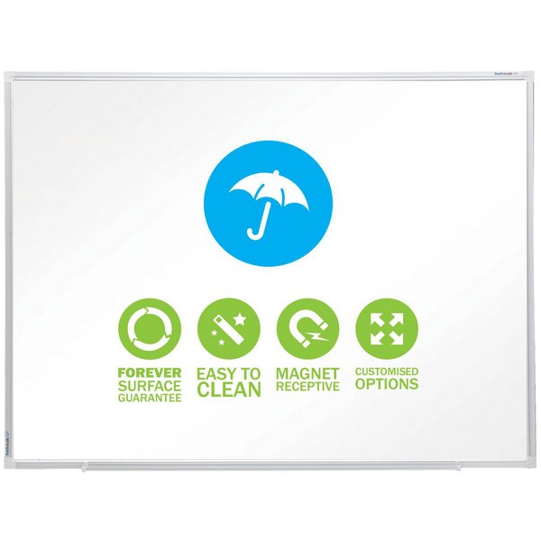 This Boyd porcelain water resistant whiteboard is designed for use in damp or wet environments. This is because the boards have a different construction core while still maintaining its full functionality. It has a handy magnetic surface allowing you to stick magnets and magnetic dusters. It also features an aluminium frame and pen self with a walling hanging kit included.