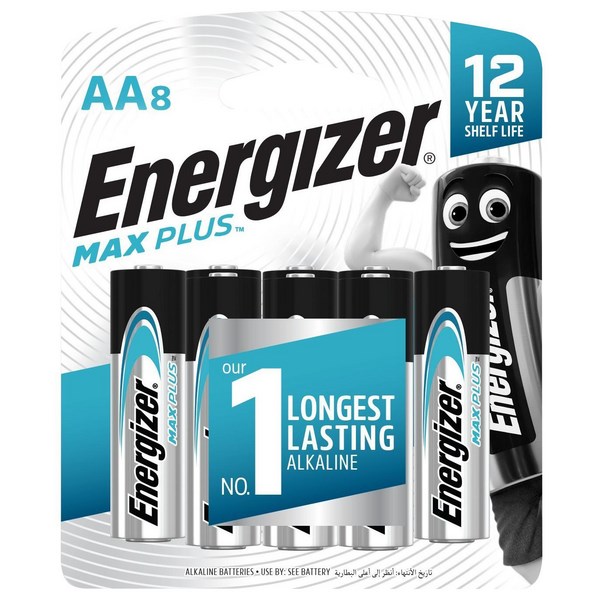 •Pack of 8 Energizer Max Plus AA alkaline batteries