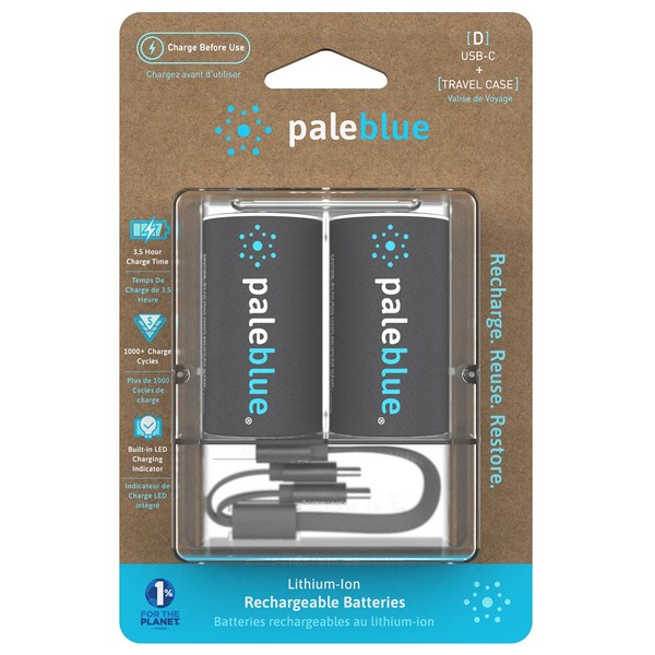Pale Blue Micro USB Rechargeable Batteries use lithium technology meaning they are fully charged after only two hours. A single one can replace 1000+ alkaline disposable batteries. They come with a micro USB-C port so you can charge two batteries at once, and they have a handy LED indicator to let you know when they are fully charged. These lithium batteries won't discharge when not in use and have on-board smart technology that provides safe charging, so your electronic devices will be safe.