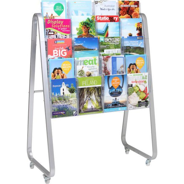 •A 20 pocket, single sided brochure with built-in lockable castors