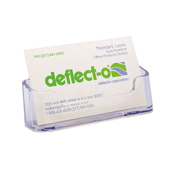 This business card holder is ideal for your desktop. Made from quality clear plastic. The business card holder can be attached to the front of Defect-O brochure holders.