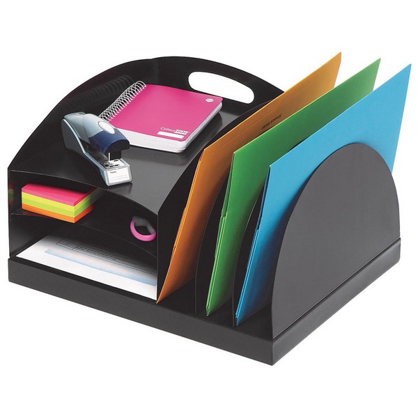 Get organised with this curved design Marbig metal desk organiser. It is perfect for storing invoices, letterheads, envelopes or any loose paper sitting on your desk. The desk organiser can fit both A4 and foolscap papers as well as other office stationery such as staplers, scissors, notebooks and more. It is made to survive in the toughest working environments such as factories and workshops. Overall measurements are 358x210x320mm and it features 3 vertical and 3 horizontal shelves.