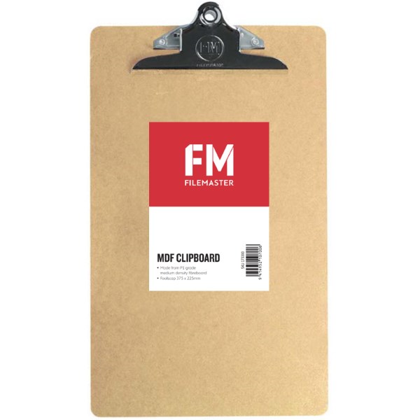 This FM Foolscap Hardboard Clipboard is durable and hardwearing, making it ideal for use in warehouses, job sites and environments where you need to write on the move. Made from MDF, this clipboard will provide a firm surface to write against in any situation.
