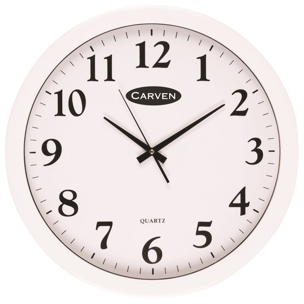 The Carven Analogue 450mm White Wall Clock is high quality with large, clear numbers and quality hands. Powered by AA size batteries, glass screen and easy to wall-mount.