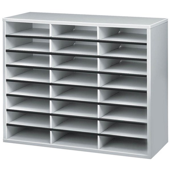 Fellowes Literature Sorter is constructed from a laminated wood shell with compartments made from strong corrugated fibre board dividers. They are much faster and easier to assembly. Use where documents are sorted, created or distributed and organise literature, mail, forms and more. Includes 24 letter size sorting compartments and self-adhesive labels for easy file identification.