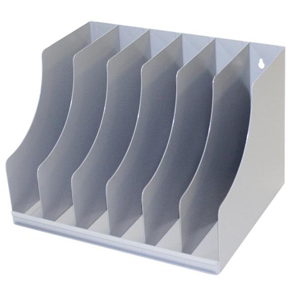 The Fluteline Desk File Sorter features a 6 slot storage rack for catalogue files. The sorter can be wall mounted or placed so it is free standing. The front slot also allows for labeling for instant identification of contents. The Sorter is made from durable metal and has a powder coated finish for long-lasting use.