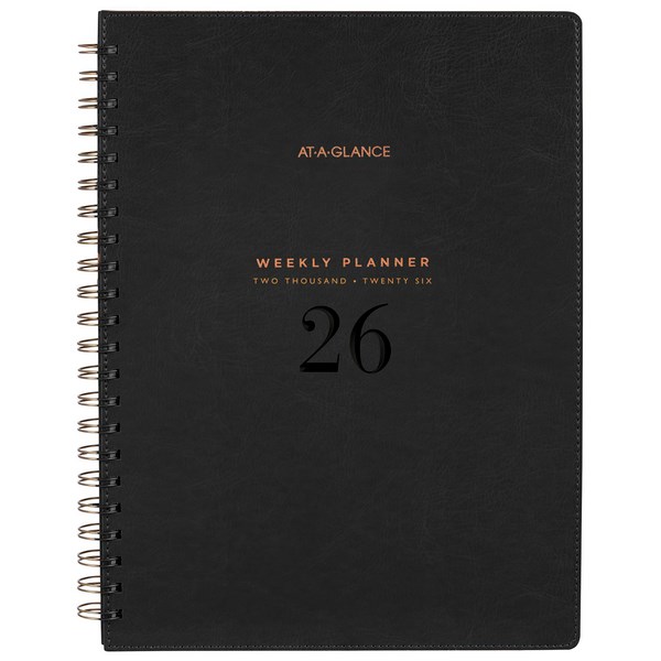 Combine function with fashion with this At-A-Glance A4 Signature Diary. The diary has a quality, flexible polyurethane cover with stitched edges and copper foil accents coupled with an antique bronze wiro binding for a professional look that doesn't compromise on style. Plan and organise easily with a monthly calendar layout at start of end month and a week to view layout for at-a-glance planning. The diary comes with multiple reference calendars, contacts pages, notes pages and an event calendar, making it super easy to keep track of all your important information and appointments and ensure nothing is forgotten.