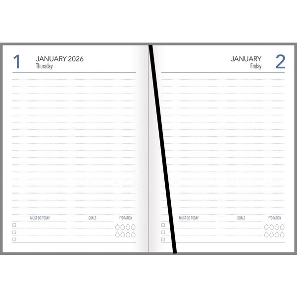 Get organised and keep track of all your important appointments with this Collins A51 Diary. The day per page layout is ideal for those who need plenty of space to plan out their day in detail. Each page has a Must Do checklist, a Goals list and a Daily Hydration tracker, along with space for notes and reminders, making planning easy and simple.