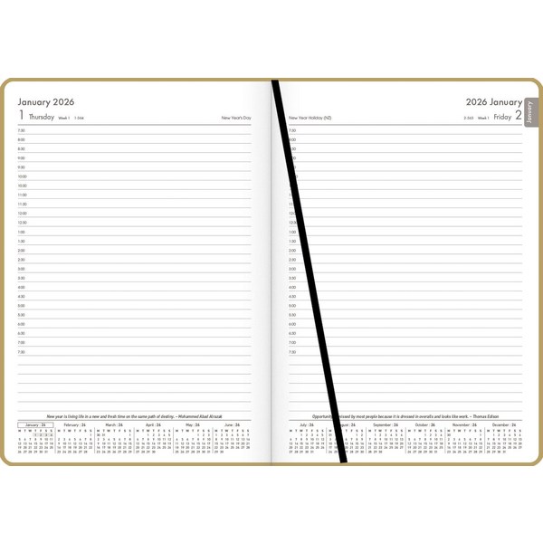 • Year-at-a-glance calendar per opening for easy planning and inspirational quotes from famous individuals