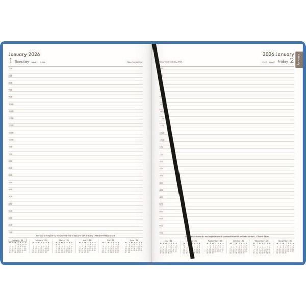 This Winc A41 Appointment Diary has been designed to help you keep track of all your important information, meetings and appointments. The day has a day per page layout, which is ideal for those who need to plan out their day in detail. Each page has appointment time slots and plenty of space for notes. It features year planners, reference calendars, a staff leave planner, conversion tables and other helpful information. A ribbon marker ensures you will never lose your place and will be able to find what you need quickly.