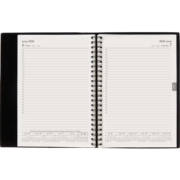 This Winc A51 Appointment Diary has been designed to help you keep track of all your important information, meetings and appointments. The day has a day per page layout, which is ideal for those who need to plan out their day in detail. Each page has appointment time slots and plenty of space for notes. It features year planners, reference calendars, a staff leave planner, conversion tables and other helpful information. Two ribbon markers ensure you will never lose your place and will be able to find what you need quickly.