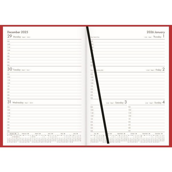 This Winc A53 Appointment Diary has been designed to help you keep track of all your important information, meetings and appointments.The diary has a week to view layout, which is ideal for those want to see and plan their entire week at a glance. Each page has appointment time slots and space for brief notes. It features year planners, reference calendars, a staff leave planner, conversion tables and other helpful information. A ribbon marker ensures you will never lose your place and will be able to find what you need quickly.