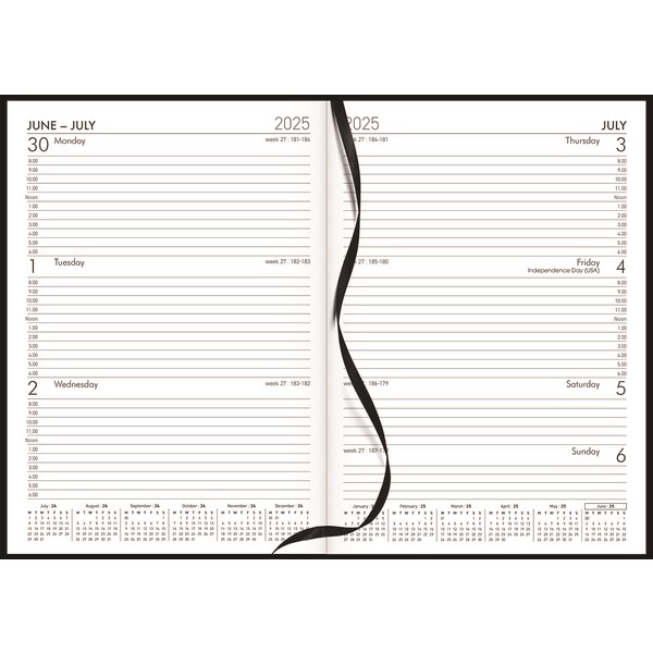 This Collins A5 Mid Year Diary helps you to keep on top of your busy schedule and organise your life. The week per view format diary lets you see your week at a glance. The diary is dated from 1st July 2025 to 30th June 2026 with appointment times from 8am - 6pm. The gloss laminated hardcover diary is strong and durable, great for day to day use.