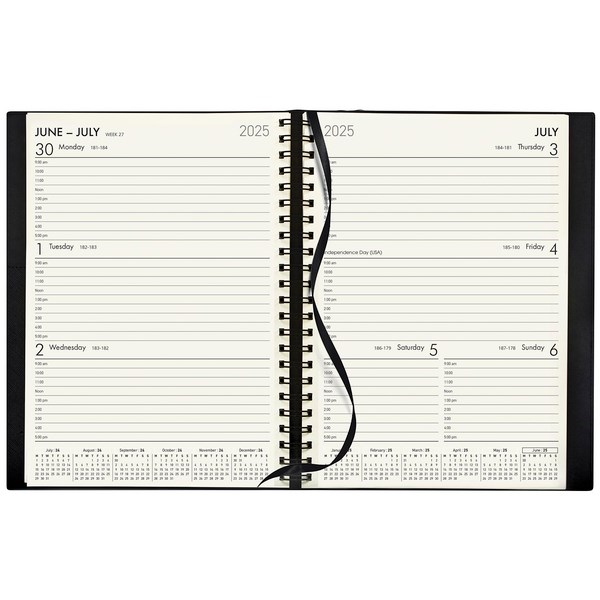 This Collins Boston A5 Mid Year Diary helps you to plan out your busy schedule and stay organised. The diary features one week per opening allowing you to see your whole week at a glance. The diary has space to write down notes, reminders, birthdays etc. The diary is dated from 1st July 2025 to 30th June 2026 with appointment times from 9am - 5pm. Convenient ribbon marker enables you to easily find your place. Spiral bound with heavily grained, soft and flexible PVC cover great for day to day use.