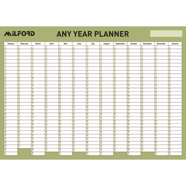 This Milford one-sided laminated any year planner includes a convenient marker pen and adhesive mounting pads. It features a write-on / wipe-off application, perfect for those who want to see their plans and appointments laid out in a January to January view.