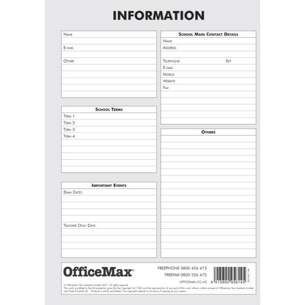 •Features information pages, timetables, year planner split by term, calendar, forward planner & first aid info