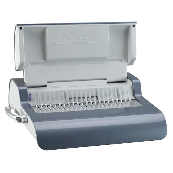Add a sleek, professional finish to presentations, reference documents, proposals, and more with the Fellowes Quasar-E 500 Electric Plastic Comb Binding Machine. Featuring an easy-to-use, streamlined design, the comb binder allows users to punch and bind in a continuous manner, increasing productivity. The Quasar electrically punches up to 25 pages at a time. It features vertical document loading for accurate punch alignment, and an enhanced accuracy edge guide for pinpoint punch alignment to accurately centre documents, ensuring all of your large office binding needs are met by one machine.