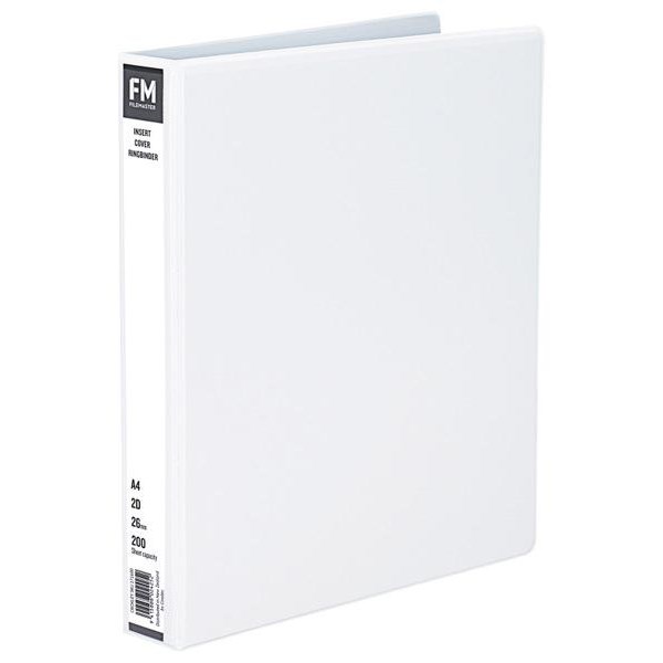 •White A4 FM ringbinder with 2 D rings and an overlay insert cover