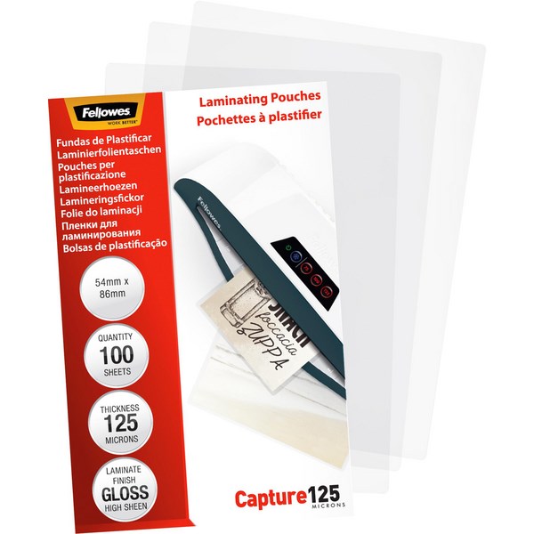•Fellowes laminating pouches with gloss finish