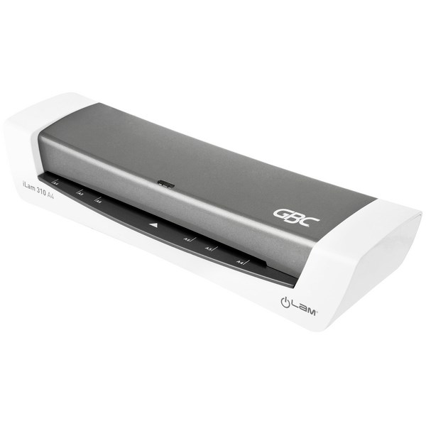 This stylish grey GBC iLam 310 Laminator brings hassle-free laminating with excellent results to your home, office or school. It is suitable for documents up to A4 size and laminates 80 to 125 micron pouches up to 310mm per minute. It heats up and is ready to use in 3 minutes, saving you time, and has a low energy consumption with an automatic shut off feature after 30 minutes of inactivity.