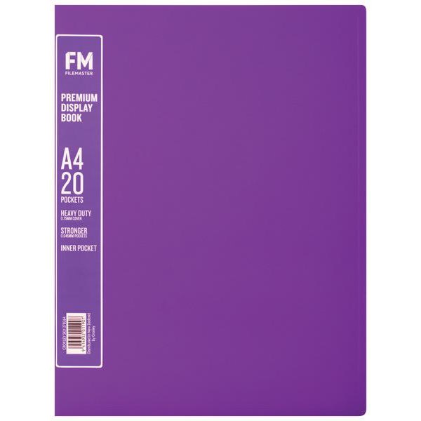 This FM A4 Premium 20 Pocket Display Book is suitable for A4 sized documents and has 20 pockets. It is perfect for protecting and displaying your reports or important documents. The display book is designed with durable, hard-wearing polypropylene covers and the clear plastic pockets are securely bound into the spine of the cover to keep your paper and documents fully protected. The passion purple colour is a contemporary, stylish way to display office presentations or school projects in a fun but also professional manner.