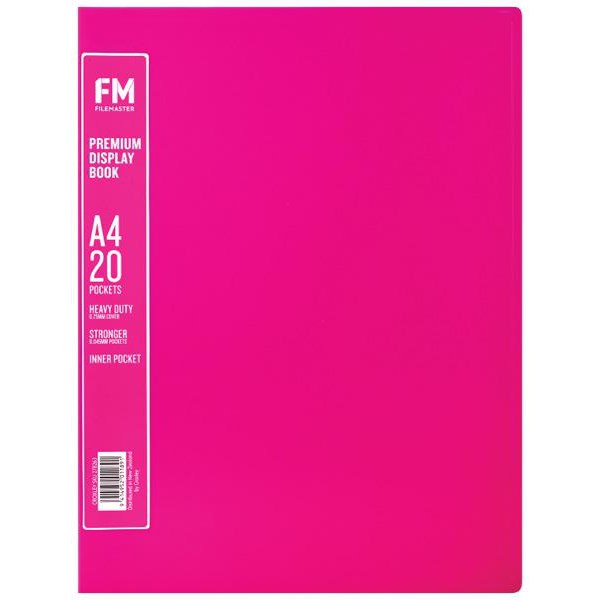 This FM A4 Premium 20 Pocket Display Book is suitable for A4 sized documents and has 20 pockets. It is perfect for protecting and displaying your reports or important documents. The display book is designed with durable, hard-wearing polypropylene covers and the clear plastic pockets are securely bound into the spine of the cover to keep your paper and documents fully protected. The shocking pink colour is a contemporary, stylish way to display office presentations or school projects in a fun but also professional manner.