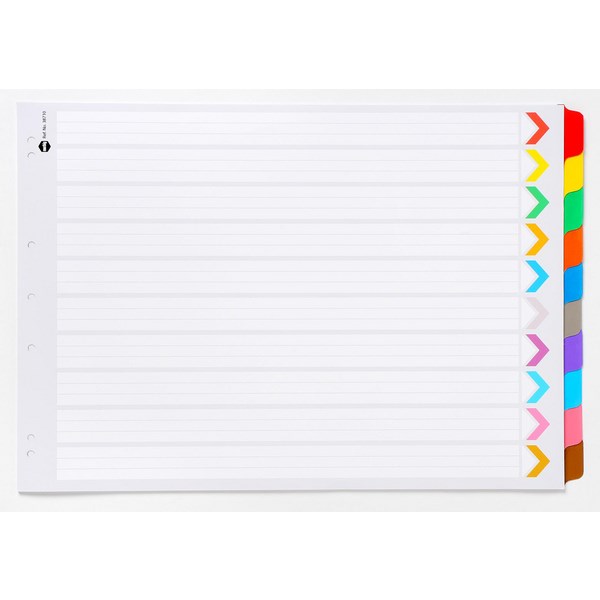Use these Marbig Index Dividers to help make your filing a breeze. Keep things organised with these durable dividers with ten colourful plastic coated tabs. The set of 10 tabs comes with a colour coded contents page for easier indexing. These dividers are A3 size and are in landscape orientation.