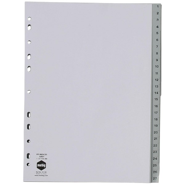 Type: Marbig Numerical Polypropylene Indices