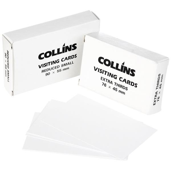 These Visiting Cards are premium quality, plain white cards which may be typed or written on for inserting into name holders. 52 cards per pack and measure 90x55mm.