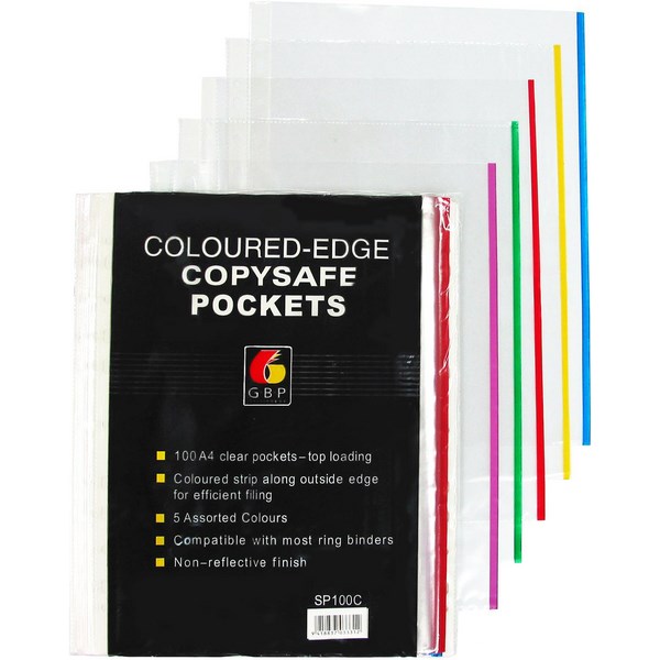 These GBP Copysafe Pockets are ideal for storing and showcasing documents at the office, at school or at home. Each pocket has a coloured edge for easy filing, sorting and identification.