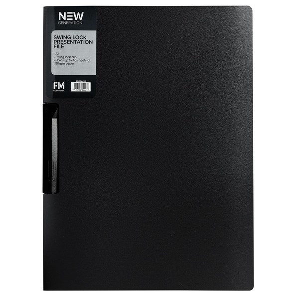 This New Generation FM A4 Swing Lock Presentation File is designed for professional use, offering a sleek and efficient solution for document storage and presentation. The file features a durable polypropylene cover and a secure swing lock mechanism, ensuring your documents are protected and easily accessible.