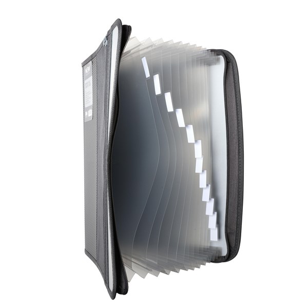 The FM New Generation A4 Expanding File with Zip is a versatile and practical solution for organising your documents. This file features 13 pockets, providing ample space for categorising and storing paperwork. The zip closure ensures that your documents are securely contained, preventing any loss or damage. It holds an impressive 260 sheets of 80gsm paper and also includes a front zipper pocket for extra storage. The gunmetal black colour and diamond cut design, adds a touch of style to your office supplies.