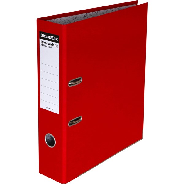 OfficeMax Lever Arch Board Files is the perfect way to keep your important documents organised at home or in the office. These lever arch board files are constructed from 100% recycled board and the rado fitting keeps the cover firmly secured. Features a metal ring allowing you to easily remove the Lever arch of the shelf easily and safely. Its red colour makes it easy to identify each file and the naming panel on the 70mm spine allows for even easier identification.