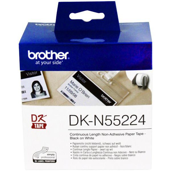 Brother Continuous Non-Adhesive Paper Roll can print labels of any size. Designed for use in creating smaller-scale print items like visitor badges and table place cards. Ideal for printing anything that need to contain a barcode, like tickets or shelf labels. The label tape is 54mm wide and 30.5m long, making it a reliable choice for all your labelling needs.