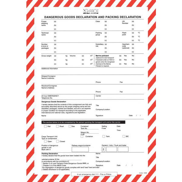 •Packing declaration forms for dangerous goods
