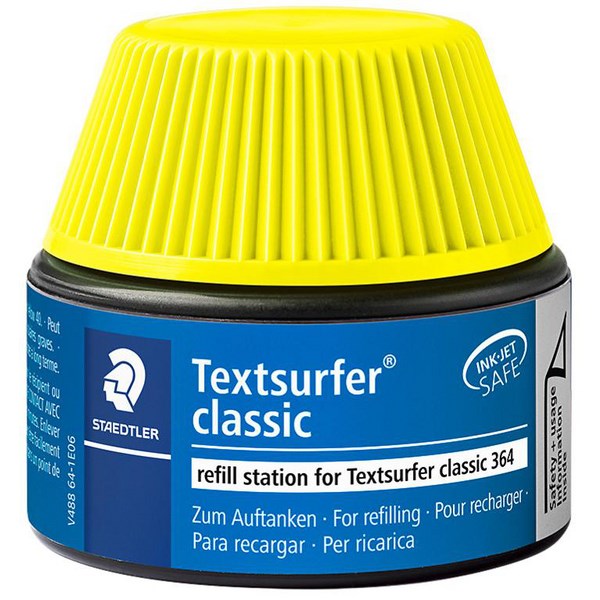 Save money and time with the Staedtler Textsurfer Classic 488 64 Highlighter Ink Refill Station, which allows you to conveniently refill your Textsurfer classic highlighter when the ink starts running low. Simply insert your highlighter into the refill pot and the system will do the rest. Drawing out only the highlighter's maximum ink content to refill, it eliminates the possibility of overfilling. This refill ink pot is ideal for keeping on hand in your desk draw or stationery cupboard.