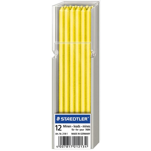 These Lumocolor Non-permanent Omnichrom Pencil Lead Refills from Staedtler are designed for use with the Lumocolor Non-permanent Omnichrom Leadholder 768. The leads are excellent for making opaque marks on just about all surfaces, including transparent and dark surfaces. Can be used on to mark on glass, paper, plastic, lacquer, metal, wood, stone, leather and almost all other polished surfaces. The lead can also be easily wiped off many smooth surfaces by simply using a damp cloth.