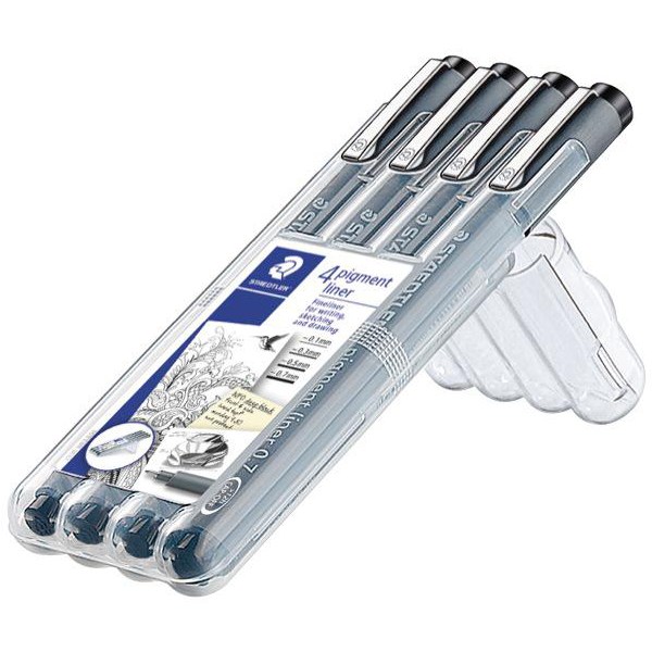 This Black Staedtler Mars Graphic Pigment Liner Pen is ideal for very fine pen work, writing, sketching and drawing. The long metal tip makes it perfect for use with stencils, templates and rulers. The pigment ink is waterproof, lightfast and will not bleed when highlighted. The cap can be left off for up to 18 hours without it drying up.
