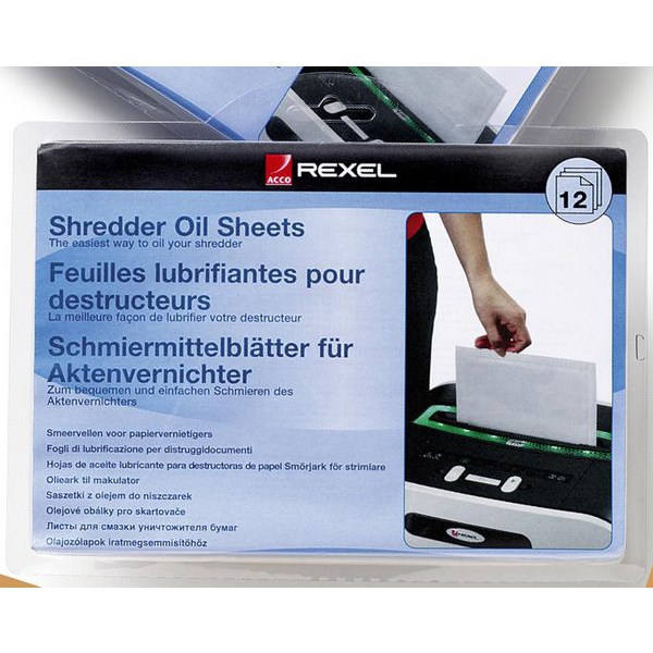 Prolong the life of your shredder by using Rexel Shredder Oil Sheets. Used once a month, it is the easiest way to lubricate the cutter blades on your shredder. These sheets distribute oil evenly over the cutters and are suitable for all departmental, large office or specialist shredders (without auto-oiling function).