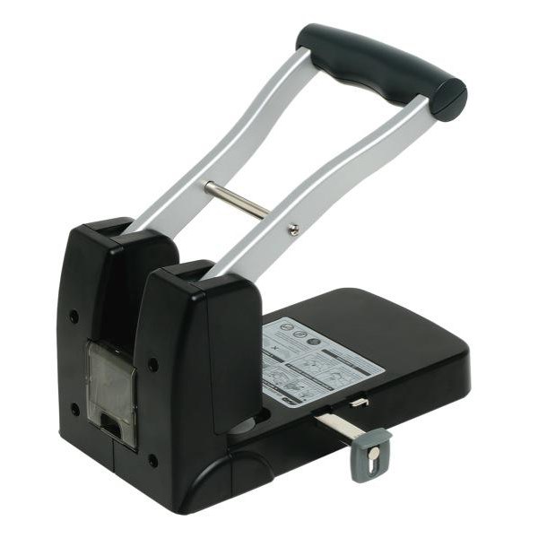 This powerful two hole punch is ideal for large quantities of paper featuring a strong handle grip with rubber coating and offers up to a 40% power saving. The hole punch includes a self centering paper hide and a waste paper storage compartment.