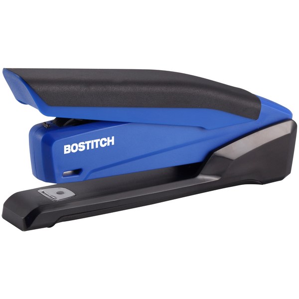 This Blue Bostitch 1126 Full-Strip Stapler is a low-force compact stapler with spring-powered stapling. It has the power of one finger stapling and takes up to 20 sheets of paper. Stapling requires minimal effort with this handy stapler and only light pressure is required, due to the spring-powered mechanism.
