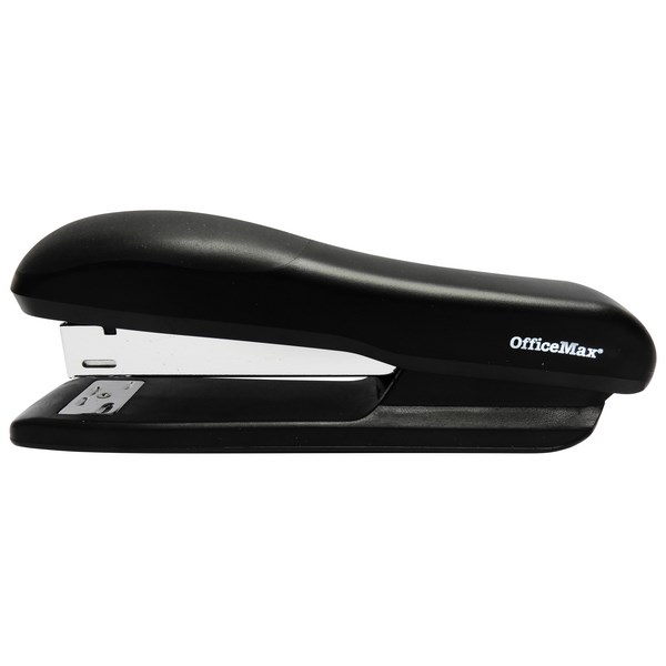 This Black Plastic OfficeMax Stapler has a simple design and is ideal for home and office use. It takes a half strip of 24/6 or 26/6 staples. The metal mechanism has a viewing window which allows you to see the staple level. The plastic shell has rounded edges and is designed to be comfortable for desktop and in-hand use.