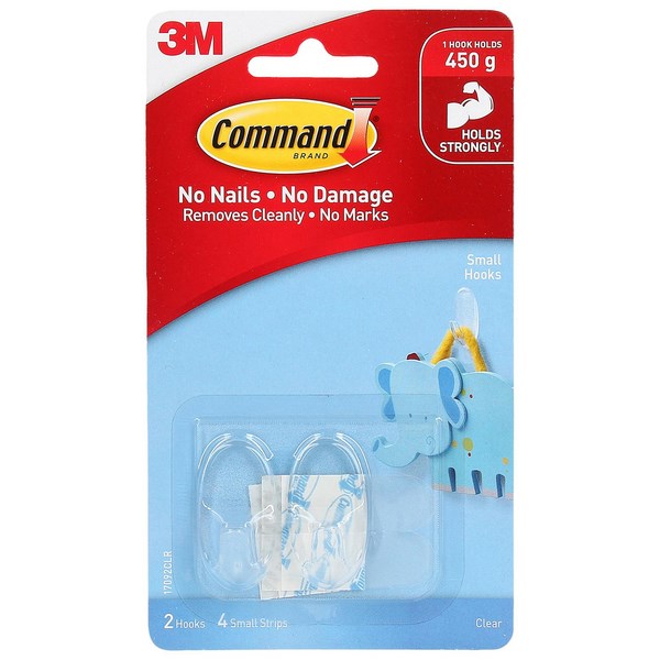 • Pack of 2 small clear hooks