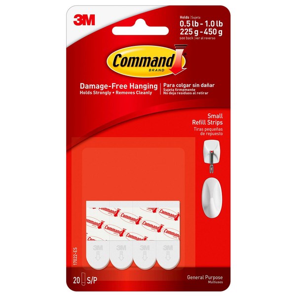These Command™ Small Refill Strips are suitable for use with small size Command™ hooks. The strips make it easy to reuse your existing hooks and are perfect for when you change your mind, need to move something or are reorganisng a space. Each strip adheres strongly and removes from surfaces cleanly.