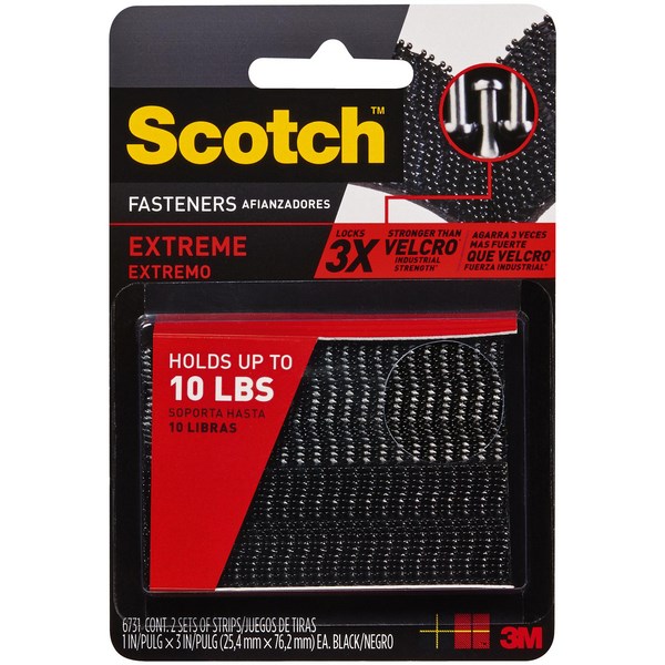 Scotch® Extreme Dual Lock Fasteners holds up to 4.6kg and are extra strong. Ideal for indoor and outdoor DIY projects, even in wet and dirty conditions. Featuring an interlocking dual lock technology and VHB™ Tape which enables use on a variety of difficult surfaces such as concrete, ceramics, painted wood, glass and plastic. Eliminates the need to use any nails or screws.