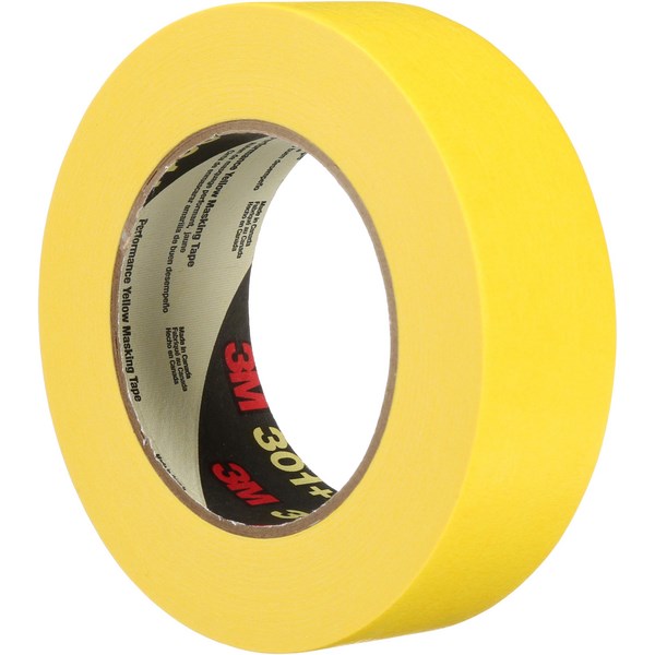 3M™ Performance Yellow Masking Tape 301+ is an industrial strength yellow coloured smooth crepe paper masking tape for paint masking, holding, bundling, and identifying applications. It features 3M™ proprietary solvent-free adhesive that sticks with confidence to most surfaces – including metal, rubber, glass, and plastic – while removing cleanly in one piece. Strong yellow crepe-paper backing conforms to irregular surfaces, resists bleed through from most industrial paint systems, and improves visibility during the paint masking process.