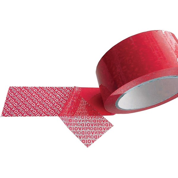•Red tamper evident tape with BOPP film backing and acrylic adhesive