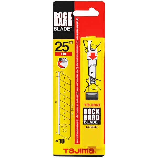 With its premium steel construction, Japanese-style tempering and multi-step sharpening, the Tajima 25mm Cutter Blades provide a dependable, solid feel and long cutting performance. The blades are extremely sharp and strong, making it suitable for general purpose scoring and cutting, and is ideal for use on all mediums, including wood and other thick materials. It features 7 snap off segments per blade and is packaged in a protective, moisture-resistant hard pack.
