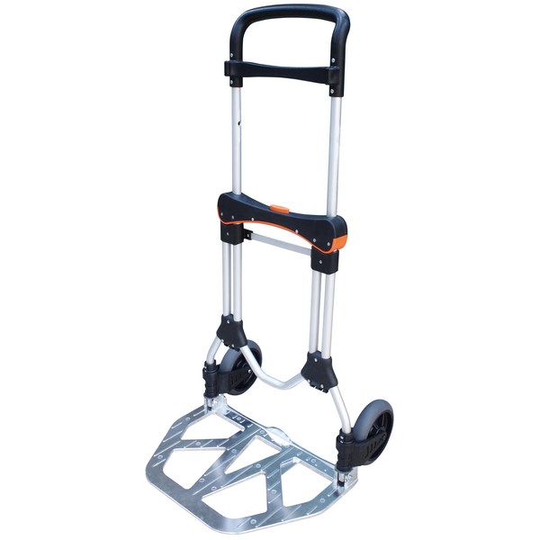 This BlueAnt Folding Medium Duty Hand Trolley offers a convenient way to transport boxes and objects. The aluminium construction hand truck features a large plate that measures 610x390mm. Plate can fold up to create a flat profile for easy storage when not in use. The hand trolley has a net weight of 11kg and large 200mm puncture proof wheels to manoeuvre where you need it.